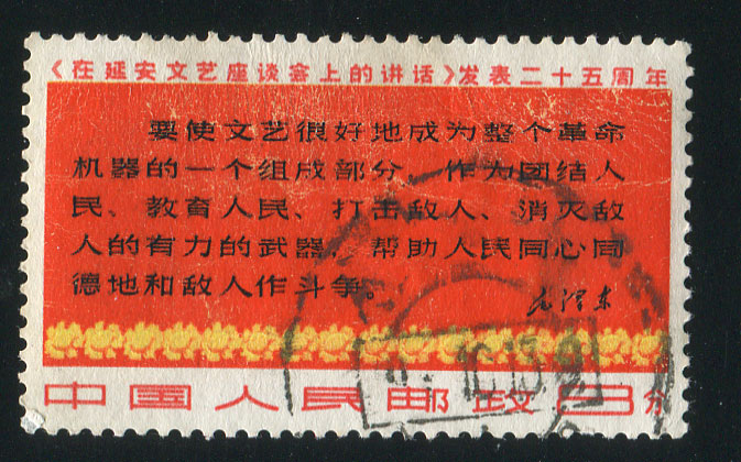 BFW107 文3 《在延安文艺座谈会上的讲话》发表25周年“8分四行半”单枚信销票