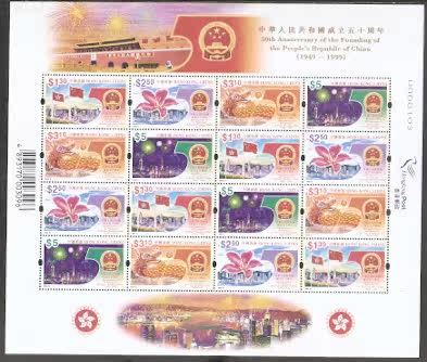 1999香港邮票,中国成立50周年,小版张。