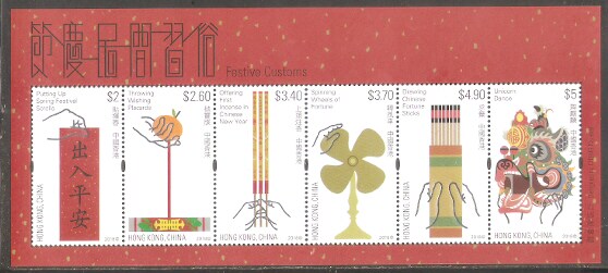 2018香港邮票,节庆民间习俗,小全张。
