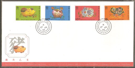 1995香港首日封,生肖猪,每枚。