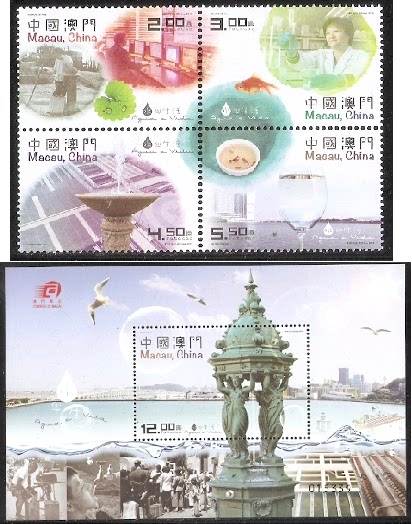 2015澳门邮票,水与生活,4全+小型张。