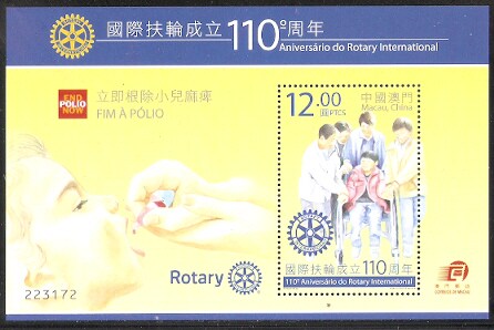 2015澳门邮票,国际扶轮成立110周年,小型张。