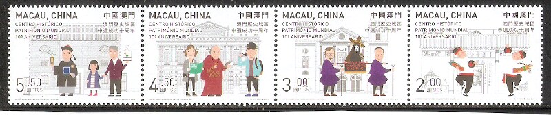 2015澳门邮票,申遗成功10周年,4全。