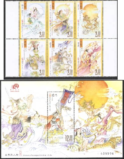2015澳门邮票,文学与人物-九歌,6全+小型张。