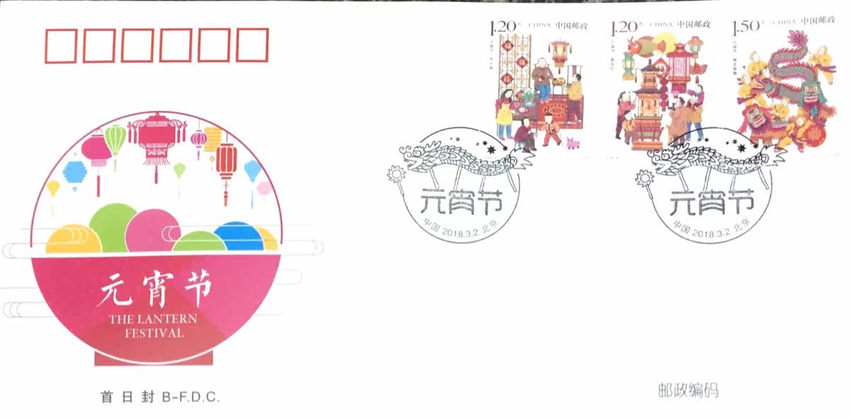 2018-4 元宵节 特种邮票首日封北京分封B-F.D.C.