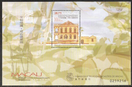 1999澳门邮票,文物保护-塔石建筑物,小型张。