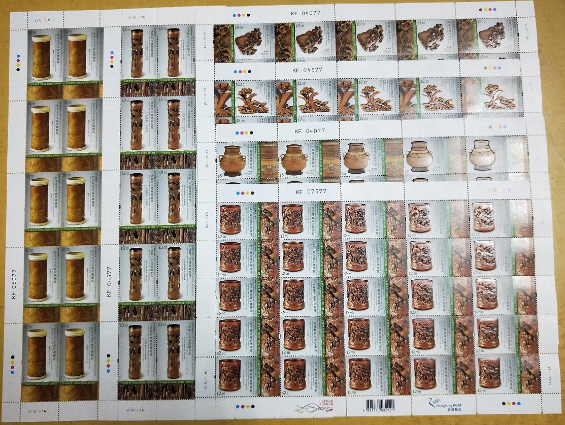 2017香港邮票,香港馆藏选粹-竹刻,6全版张