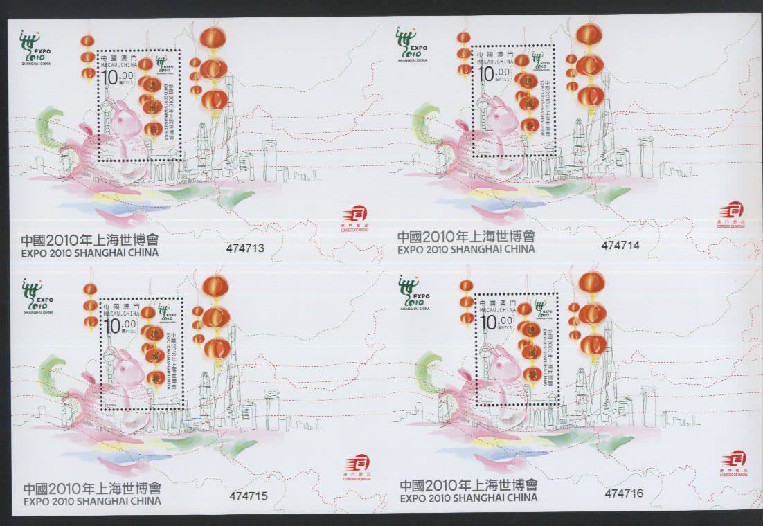 2010年 中国 2010年 上海世博会 澳门 四连体 小型张 小版