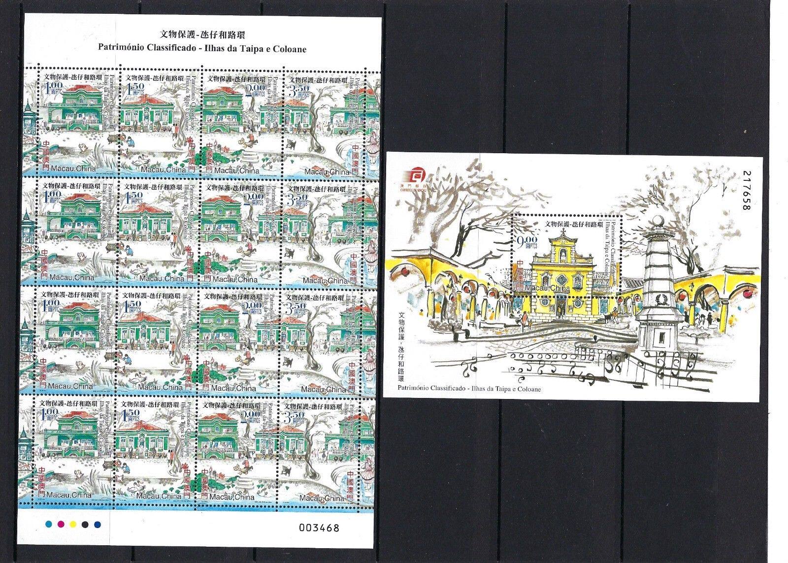 澳門 2003年 文物保護-氹仔和路環 郵票 + 小型張 小版張