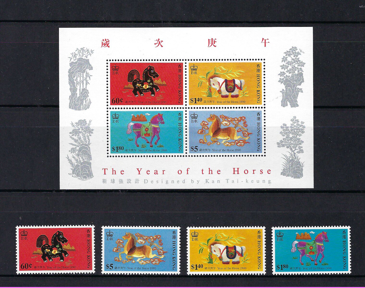 香港 1990年 第二輪 生肖 馬年 郵票 + 小全張