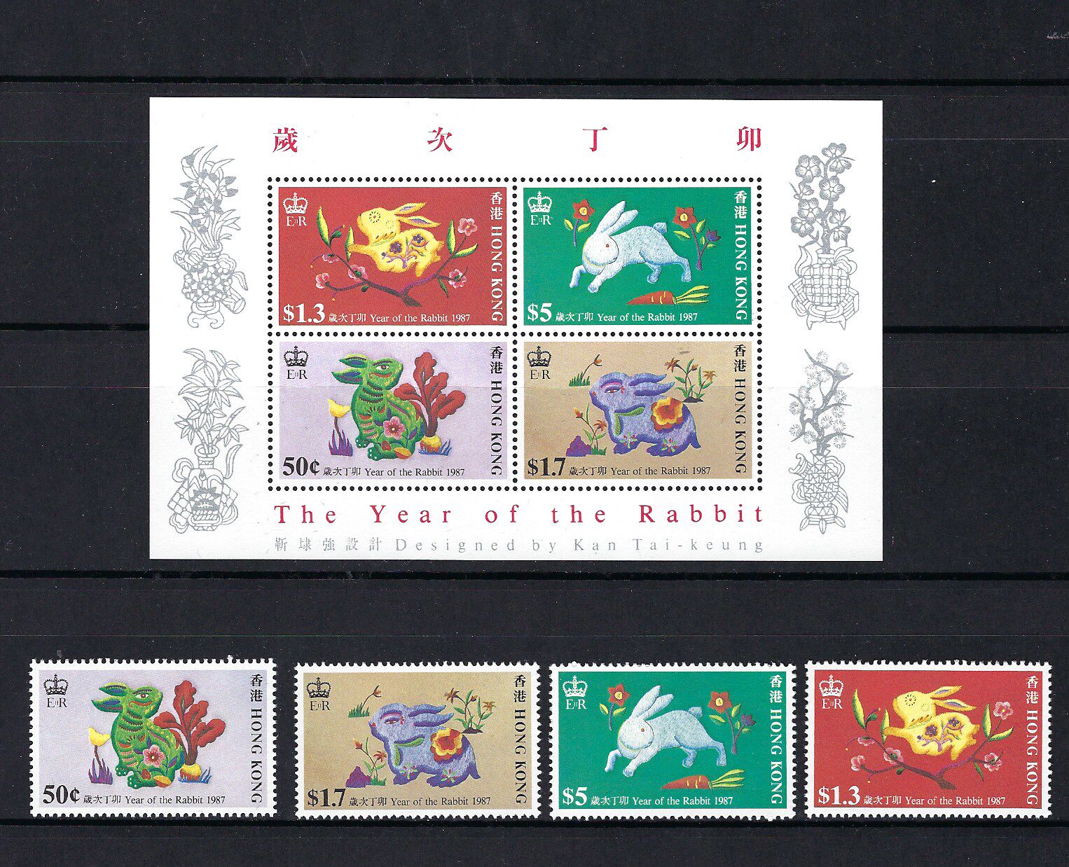 香港 1987年 生肖 兔年 郵票 + 小全張