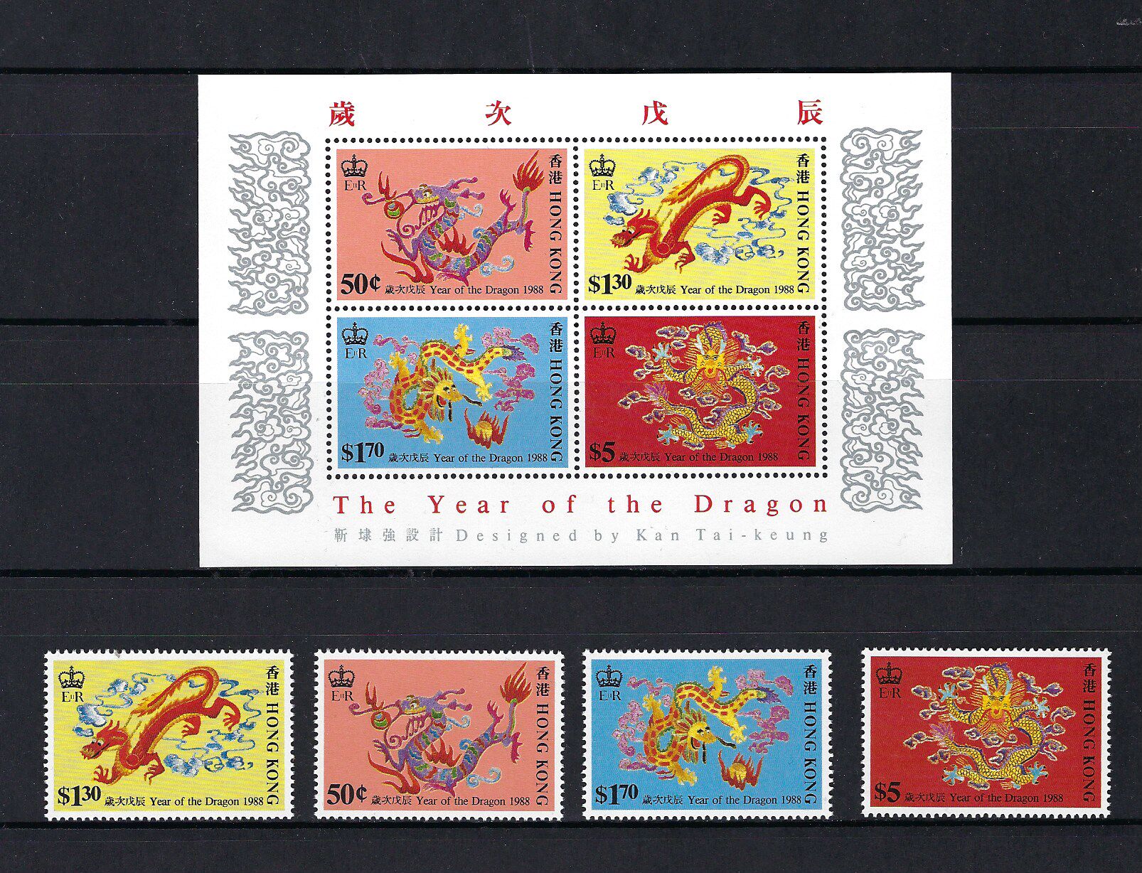 香港 1988年 生肖 龍年 郵票 + 小全張