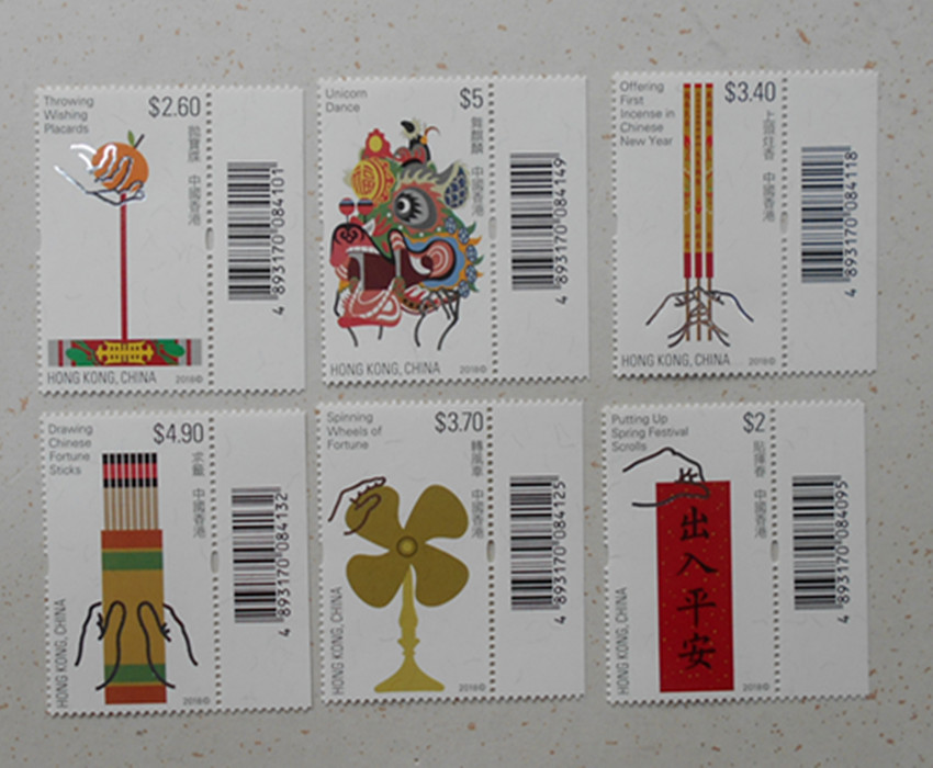 香港2018年节庆民间习俗邮票 (条码特殊位置)