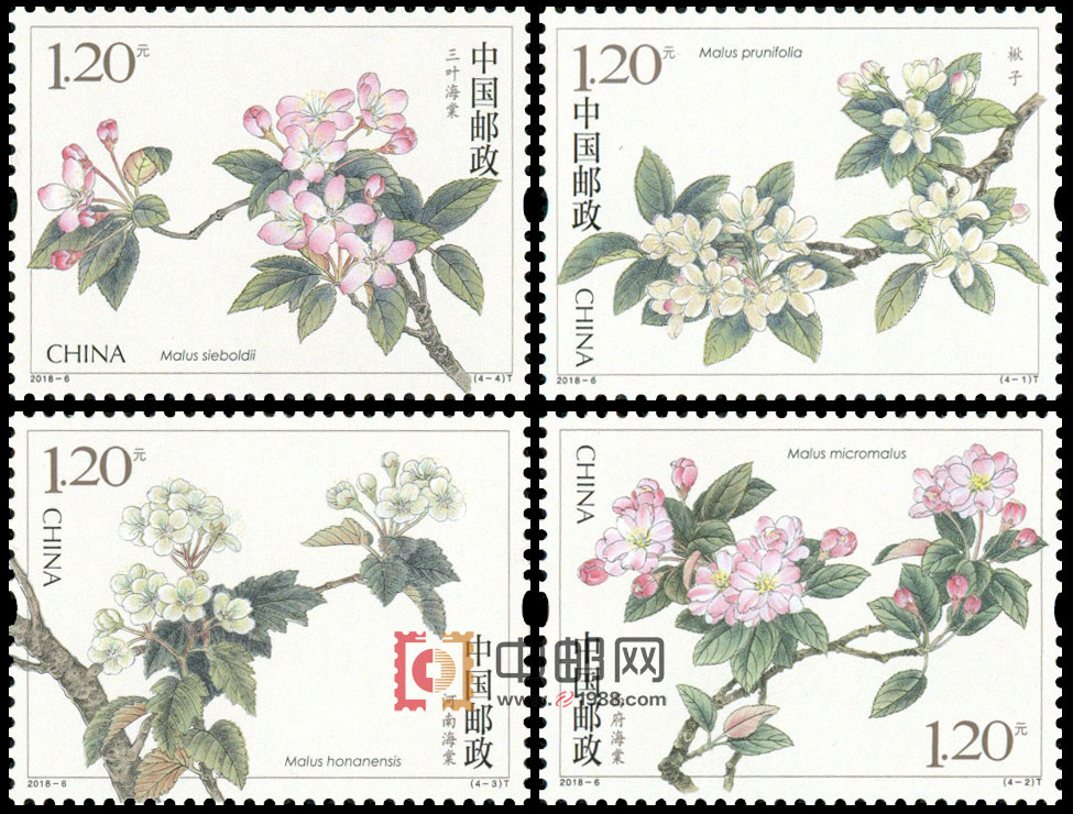 - 商品详情: 海棠花是新中国首套雕刻版花卉邮票,可见今年邮政对此票的重视。设计者龚文桢,1945年出生,当代中国工笔花鸟画领军人物,师傅是著名画家田世光和李苦禅,1988年的兰花和2005年的玉兰花就是他设计的。