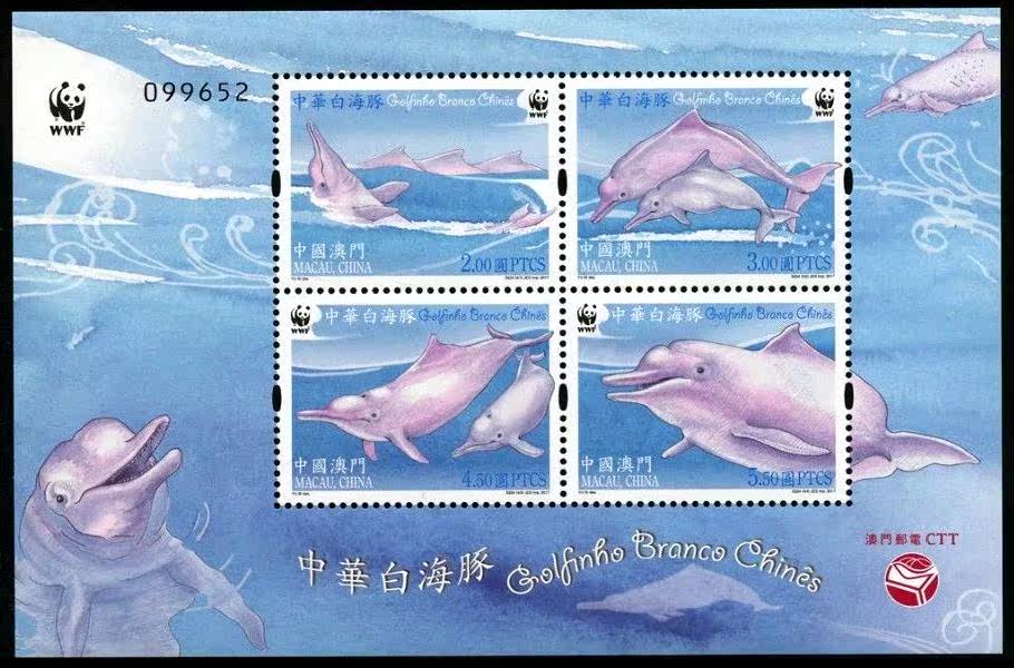中国澳门2017年中华白海豚邮票小全张(含4票)