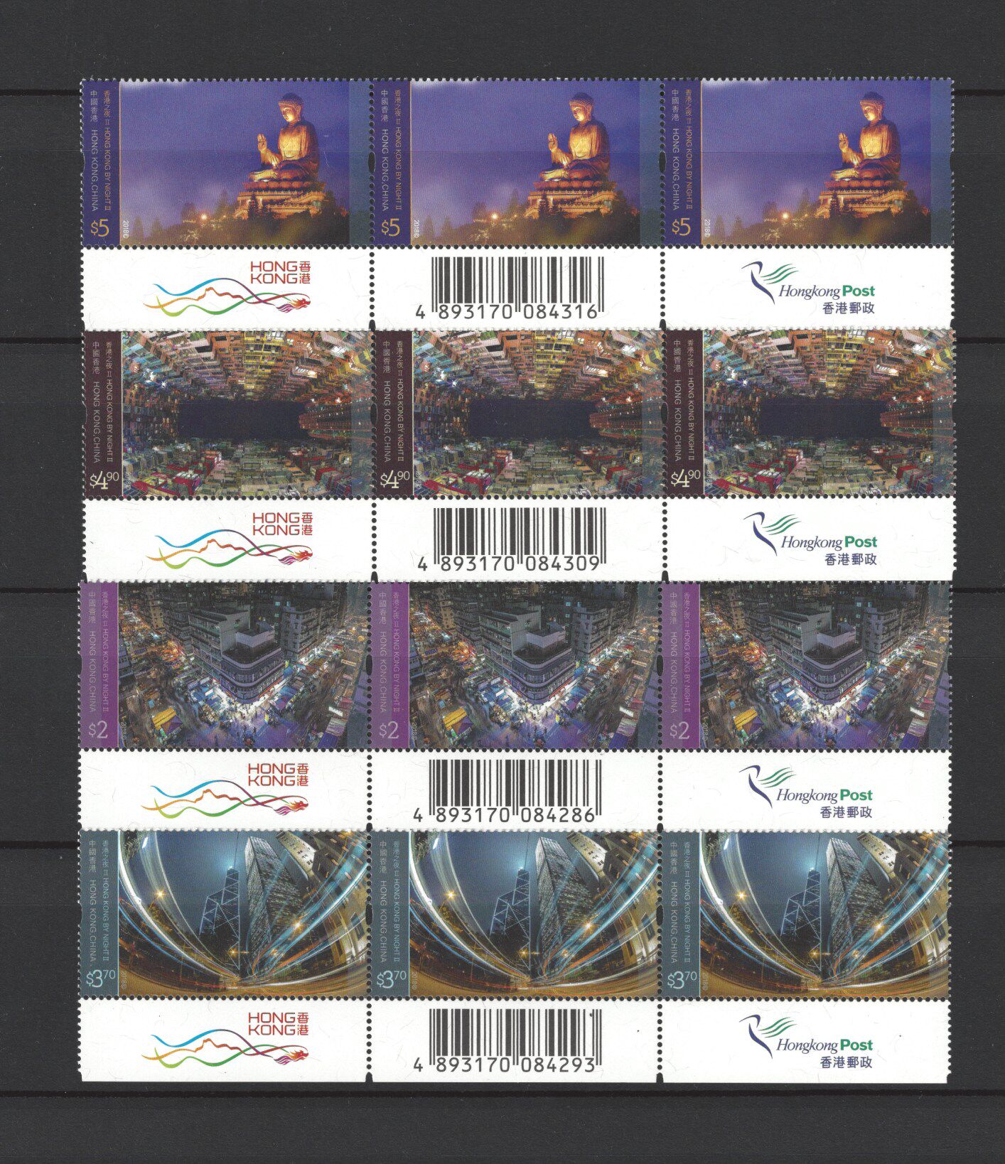 香港 2018 香港之夜 (二) 郵票 3连 特別位 雀仔 飛龍