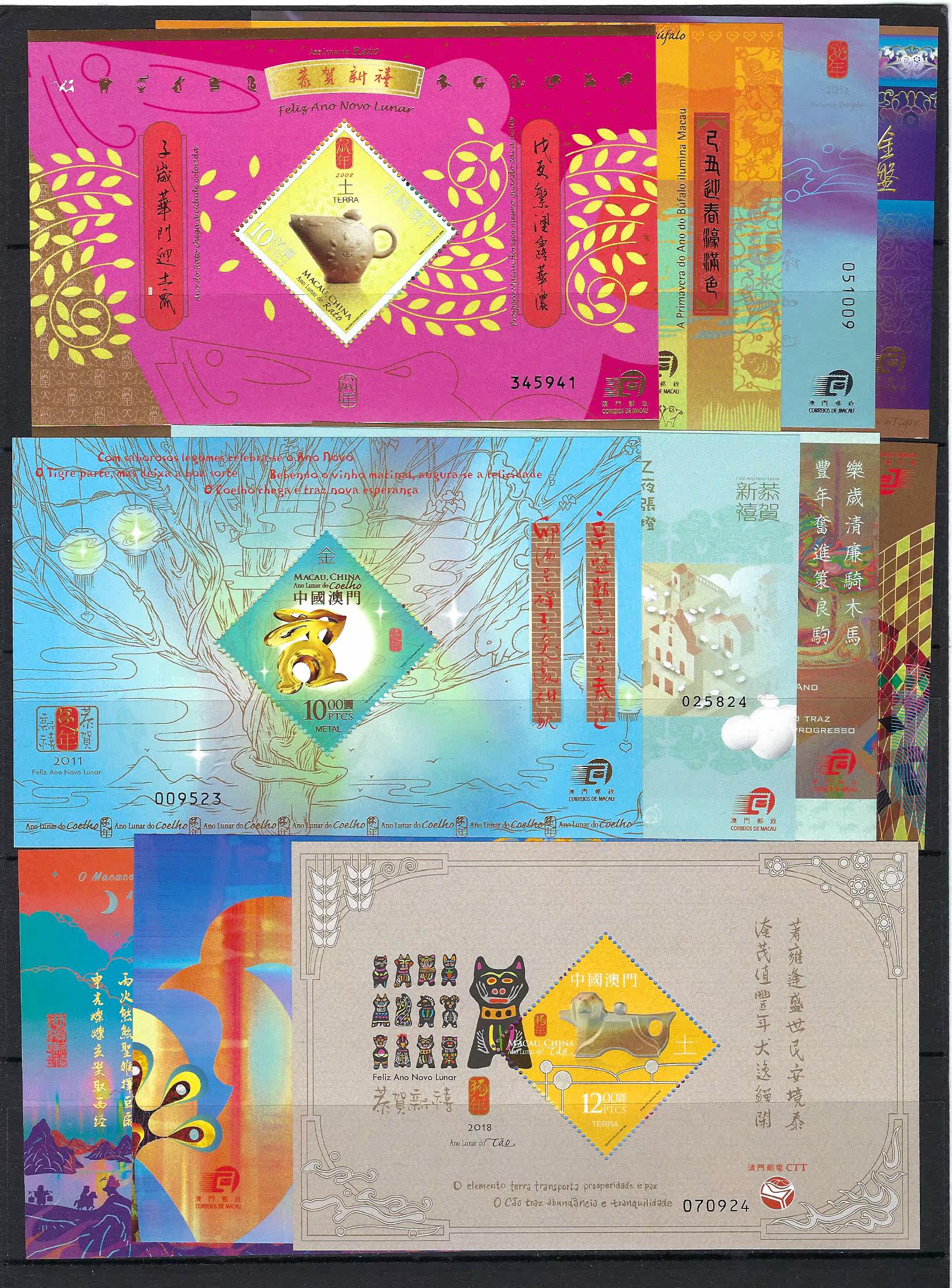 澳門 2008 - 2017 2018 狗年 三輪 生肖 郵票 小型張 x 11