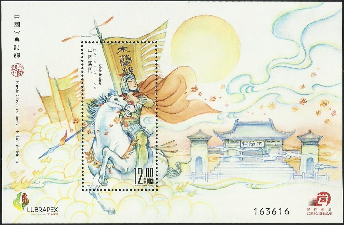 澳门2016年中国古典诗词-《木兰辞》邮票小型张