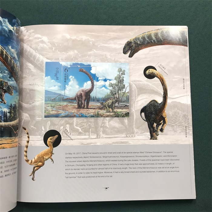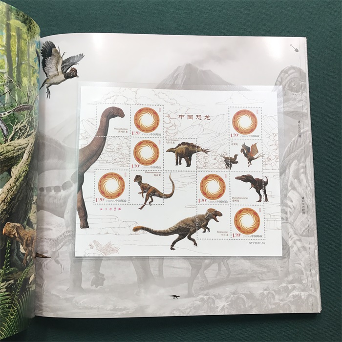 内容:邮册展现恐龙生活的时代及生存场景,内含《中国恐龙》套票版、型张、首日封一套两枚、小型张首日封一枚、六枚版太阳神鸟主图个性化邮票通用版。 发行日期:2017-05-19