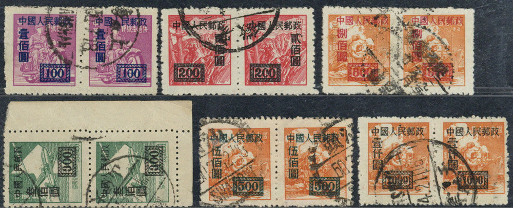 BFR129 改1 “中华邮政单位邮票”(上海大东版)加字改值成套信销票双连