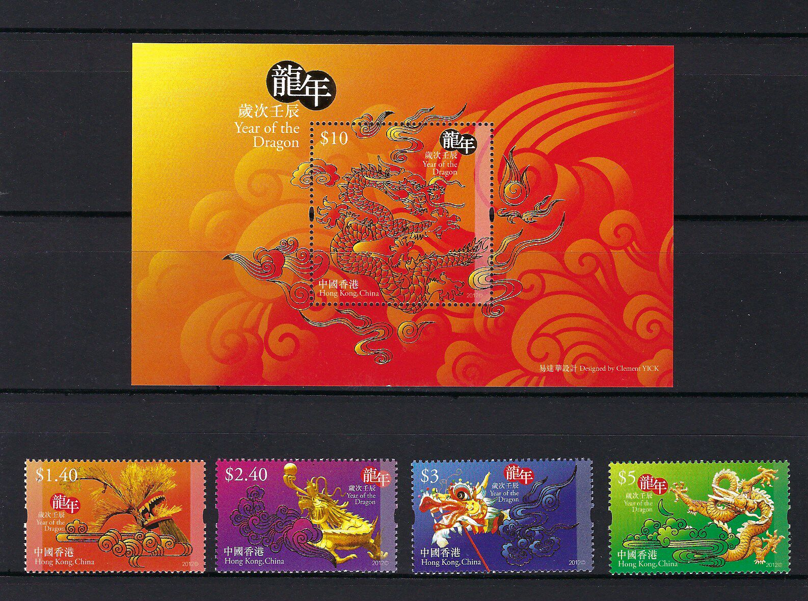 中国香港2012年农历生肖龙年(邮票4全+小型张)