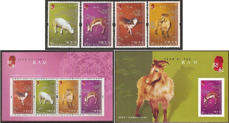 2003香港邮票,生肖羊,4全+小型张+小全张。