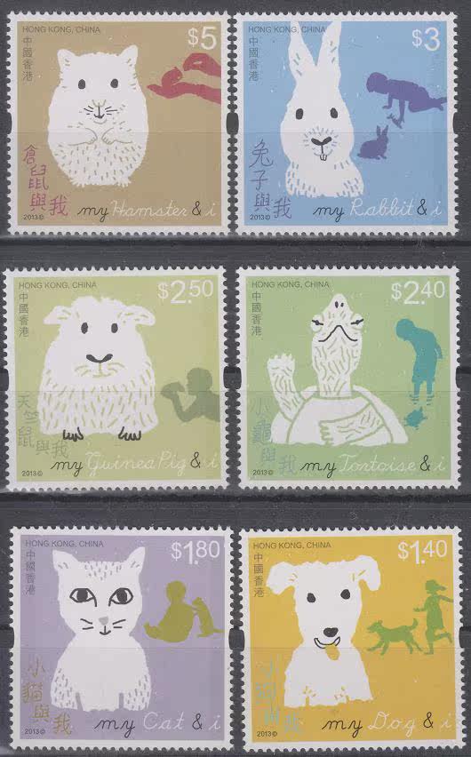 中国香港2013年儿童邮票—宠物与我邮票6全
