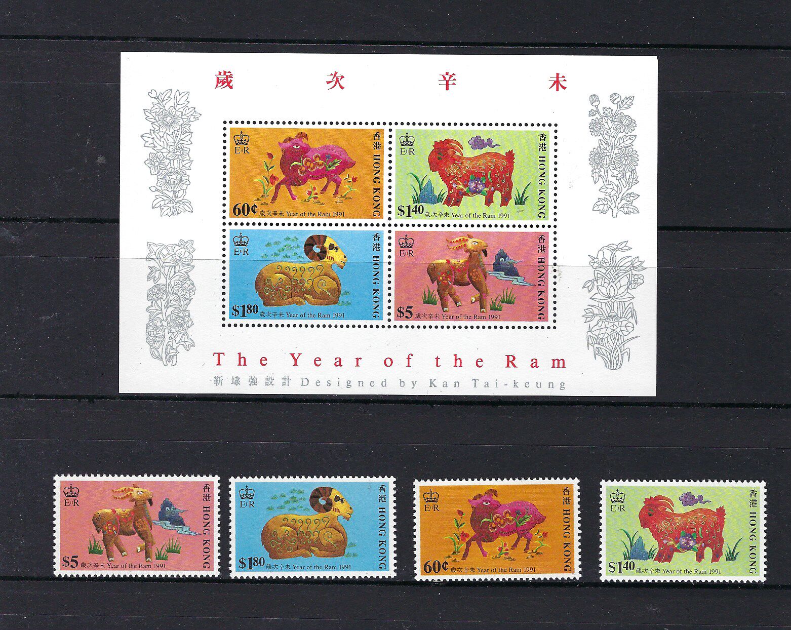香港 1991年 生肖 羊年 小全張 + 郵票