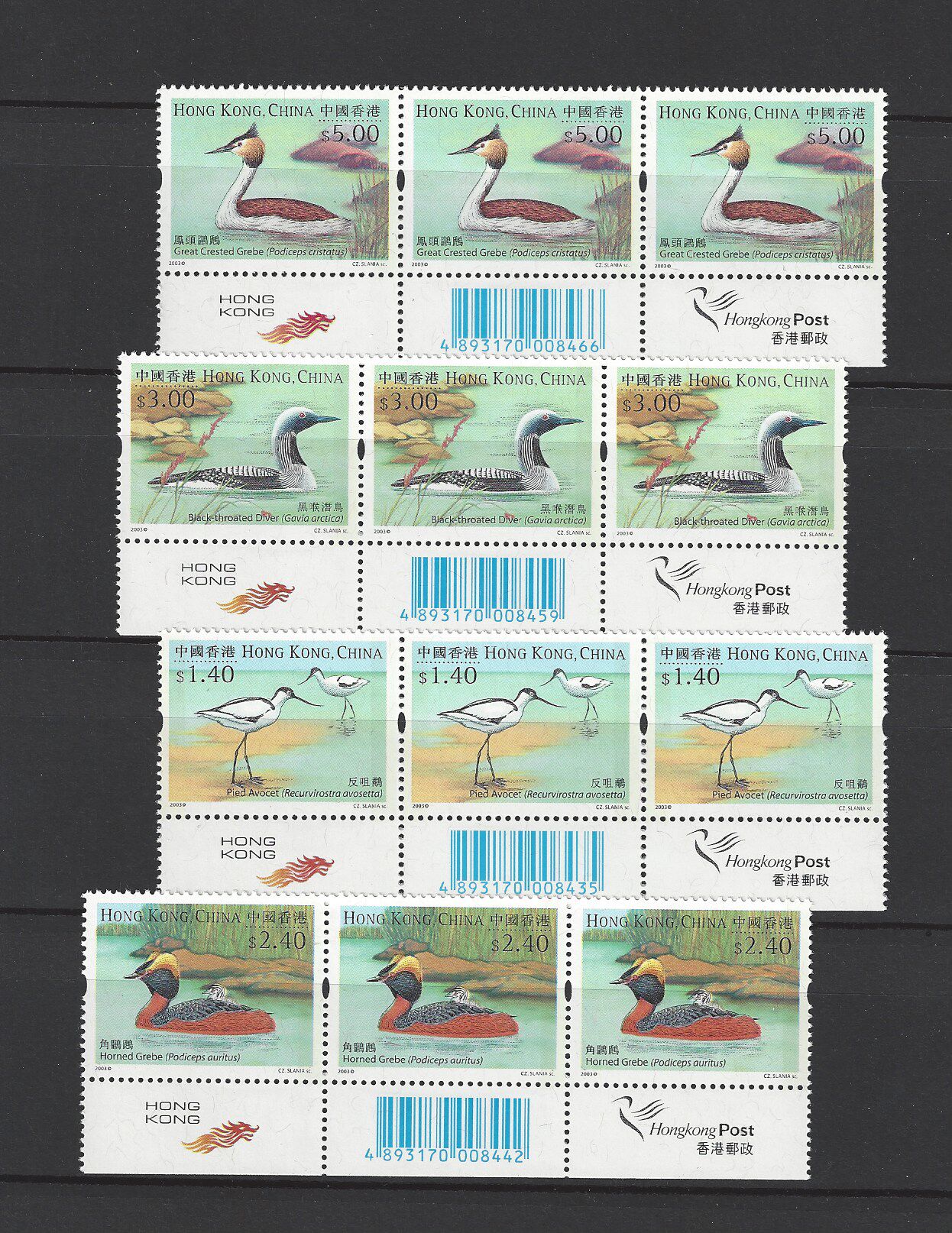 香港 2003年 水鳥- 與瑞典聯合 發行郵票 三連 雀仔位