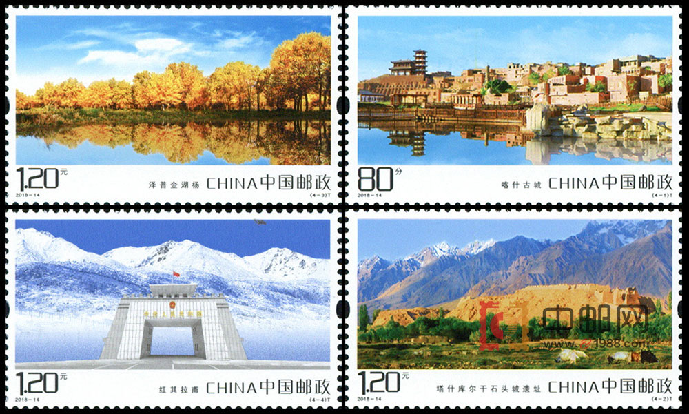 中国邮政定于2018年6月9日发行《喀什风光》特种邮票1套4枚,邮票图案名称分别为:喀什古城、塔什库尔干石头城遗址、泽普金湖杨、红其拉甫,全套邮票面值4.40元。 喀什,古称疏勒,位于新疆维吾尔自治区西南部,历史上是丝绸之路的交通枢纽和客商云集的国际商埠,是中国历史文化名城,被誉为“东方开罗”。喀什地处欧亚大陆中部,具有“五口通八国,一路连欧亚”的独特区位优势和口岸集群优势,是国家向西开放的桥头堡和“一带一路”、“中巴经济走廊”两大战略覆盖交集的重心。2010年,中央正式批准设立喀什经济特区。