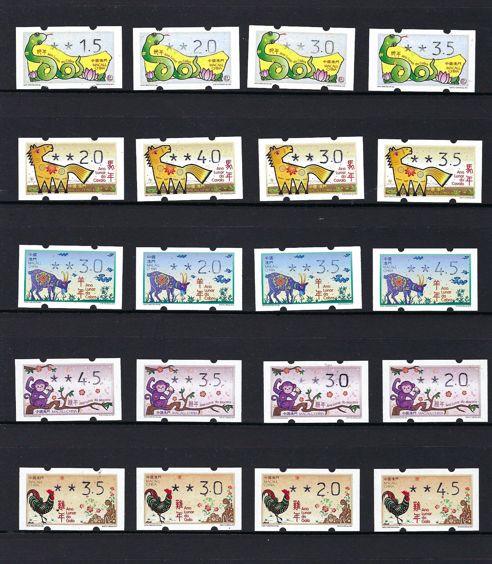 澳門 2013 - 2018 蛇 - 雞年 生肖 电子邮票 邮资 标签 細體 幼字