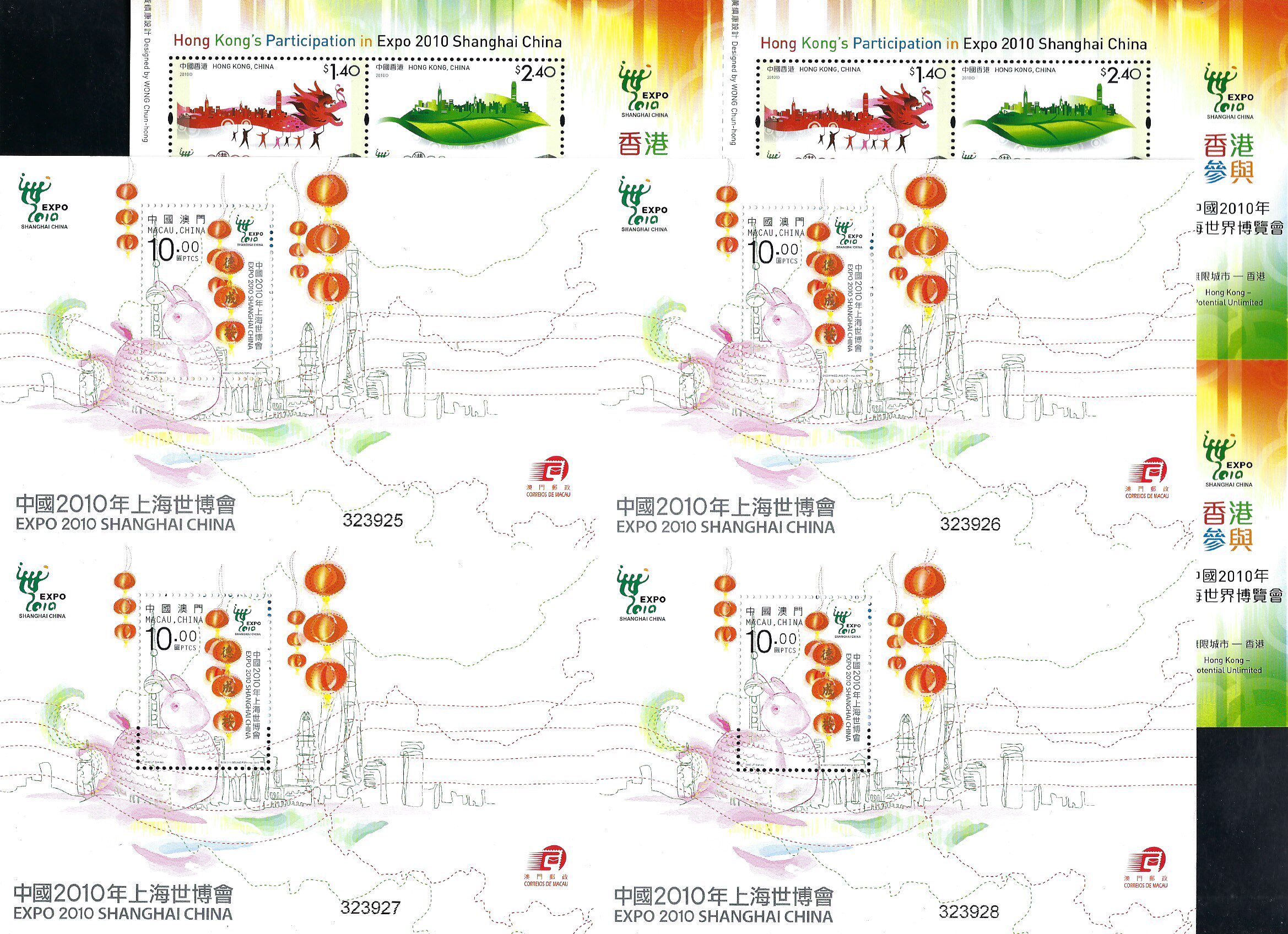 2010年 中国 2010年 上海世博会 澳门 +香港 四连体 小版