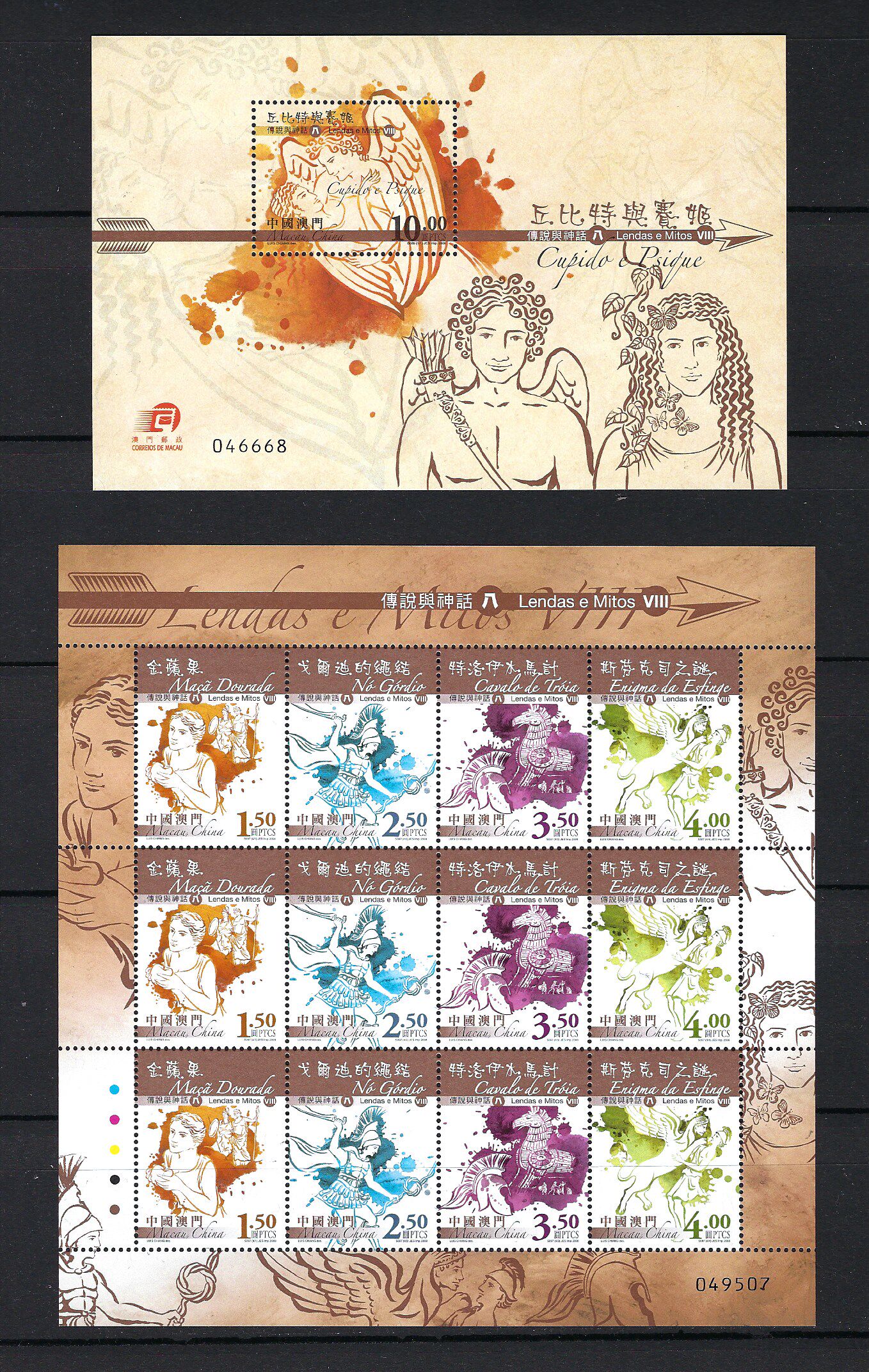 澳門 郵票 2008年 傳說與神話 丘比特 八 小型張 + 小版張