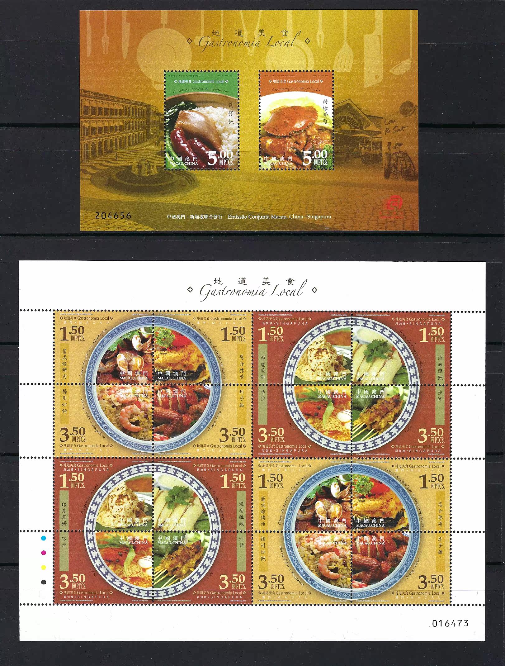 澳門 2008 年 地道 美食 郵票 小型張 + 小版