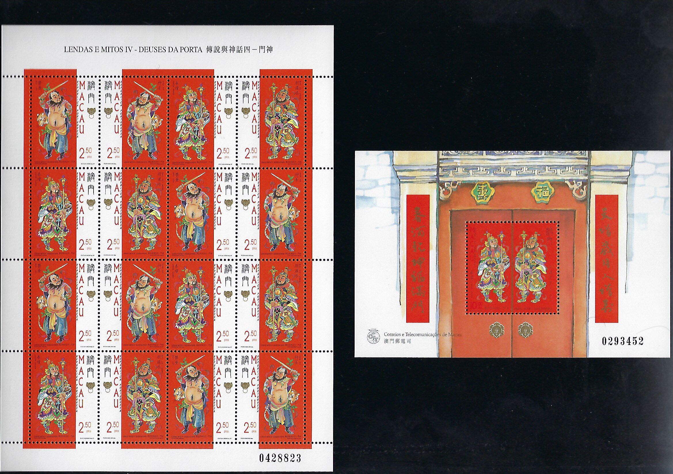 澳門 郵票 1997 傳說與神話 第四組 門神 小型張 + 小版