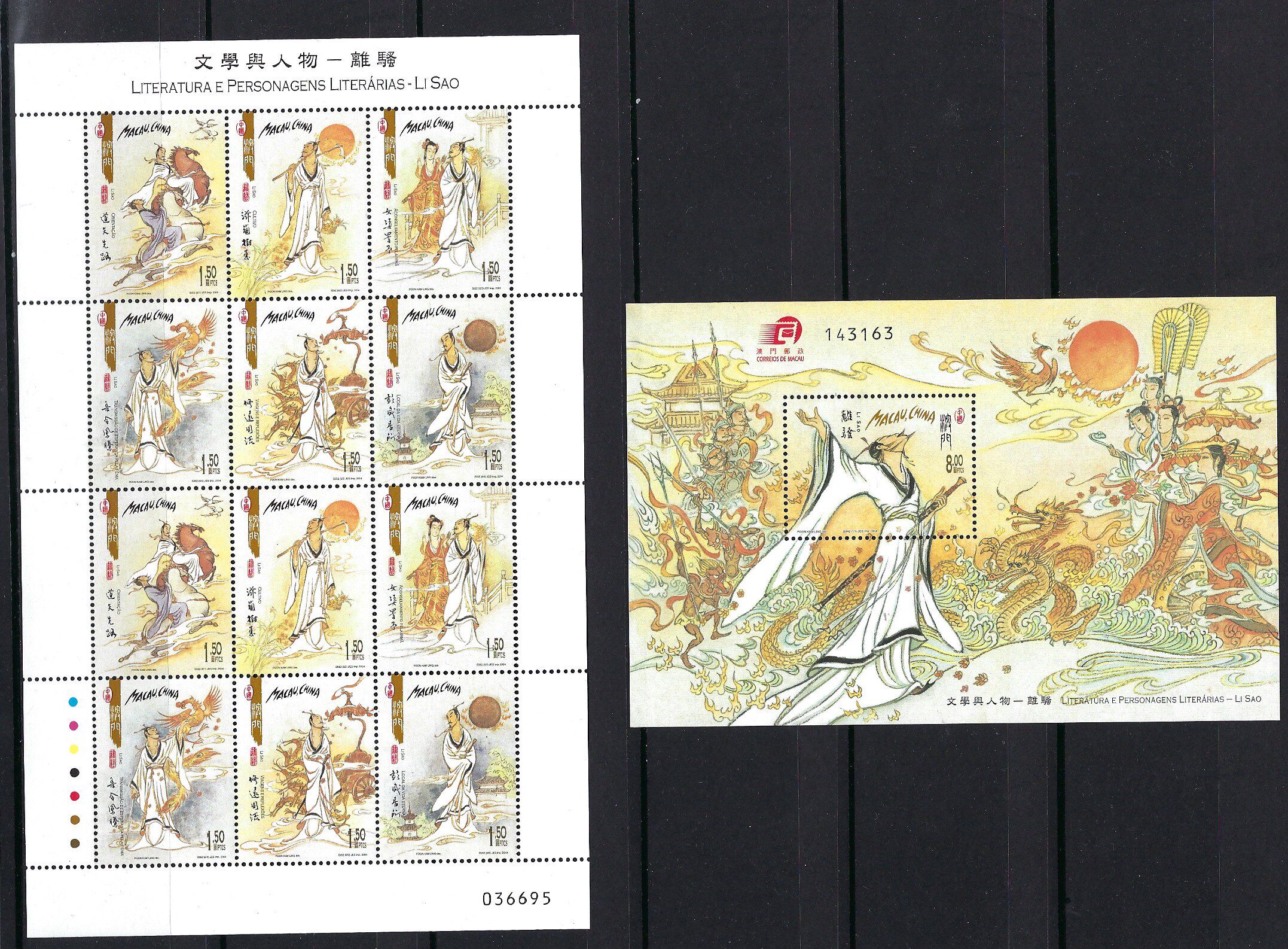 澳门 2004 年 文學與人物 離騷 郵票 小型張 + 小版张