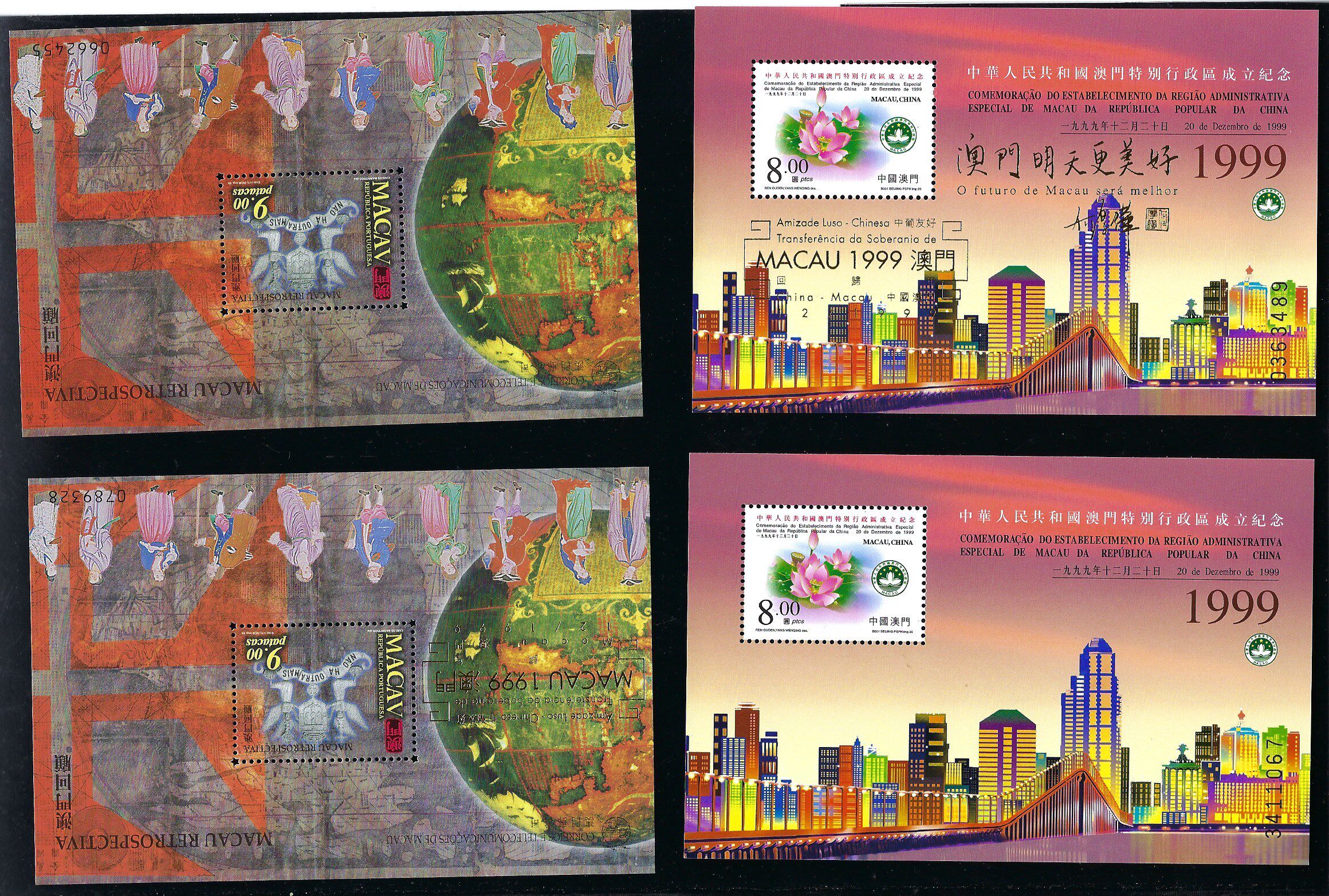 中國 澳門 1999年 澳門特別行政區成立 小型張 + 加字 + 回顧