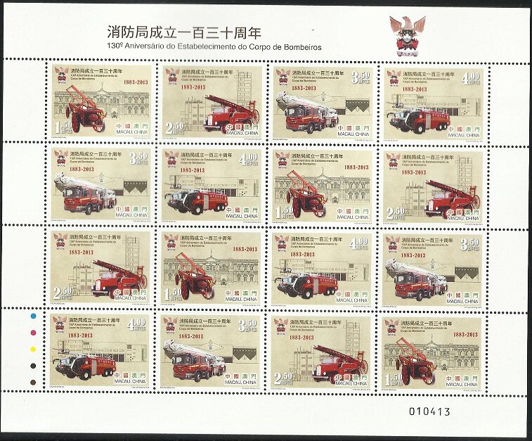 澳門 2013 消防局成立一百三十周年 S155 郵票 小版