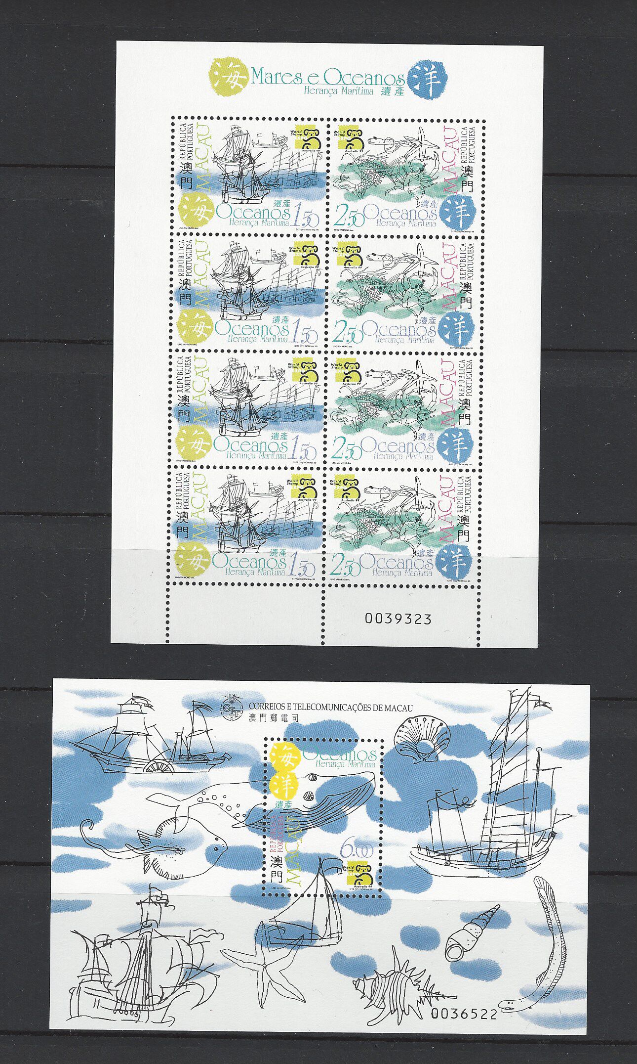 澳门 1999年 海洋遗产 邮票 小型張 + 小版张