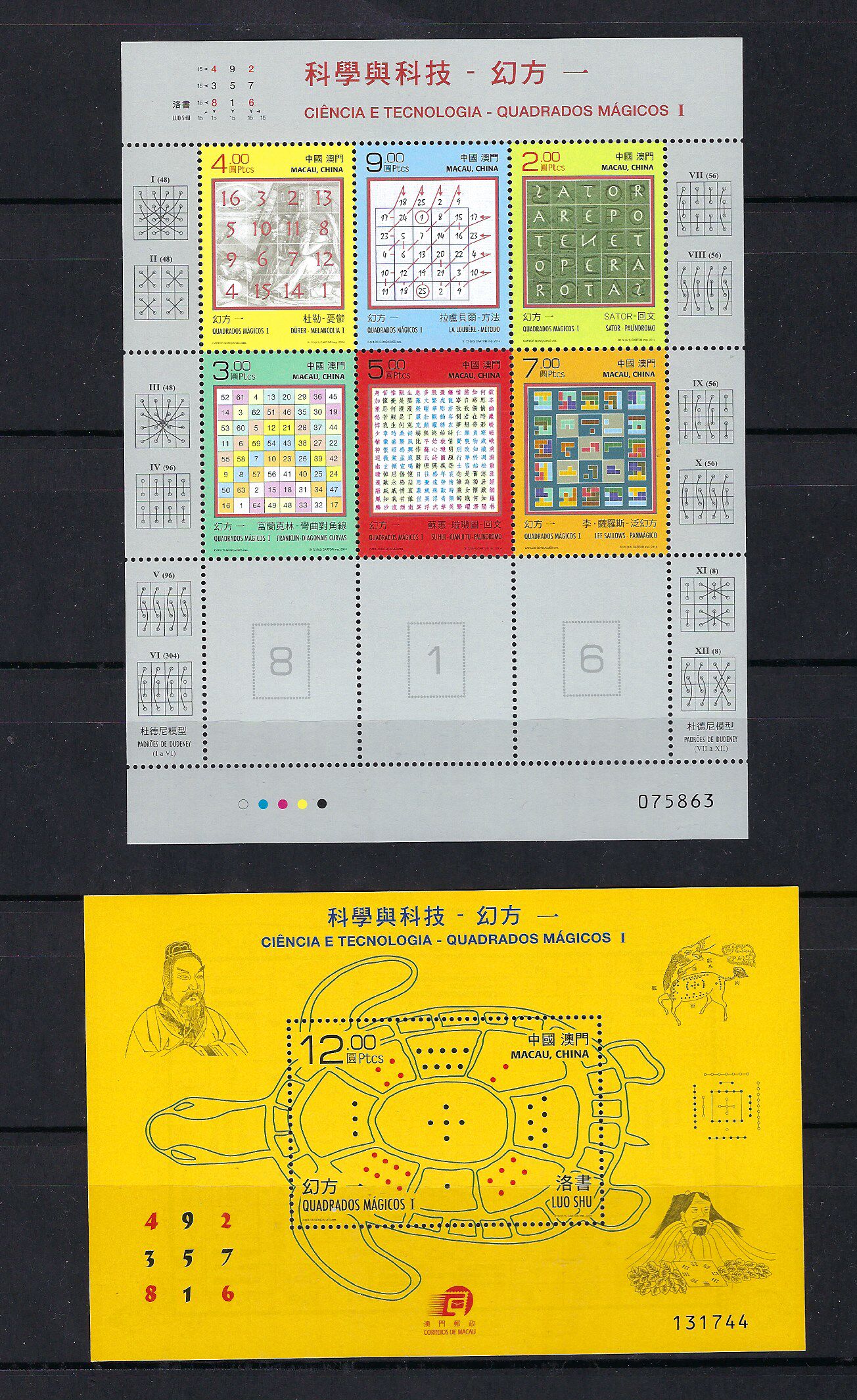 中国 澳门 邮票 2014 科学与科技 小版张 + 小全张 幻方