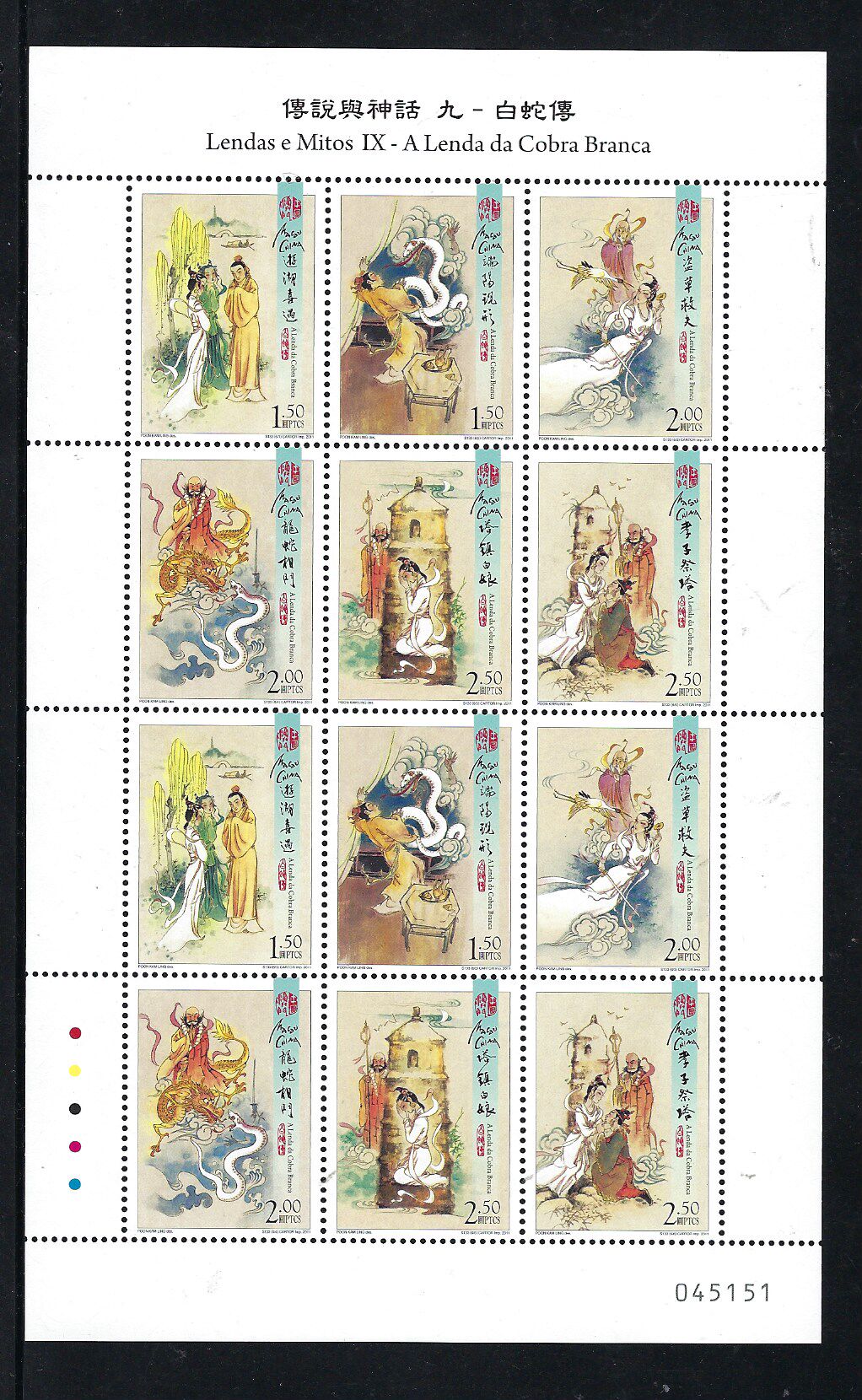 澳門 2011年 傳說與神話 九 - 白蛇傳 郵票 小版張