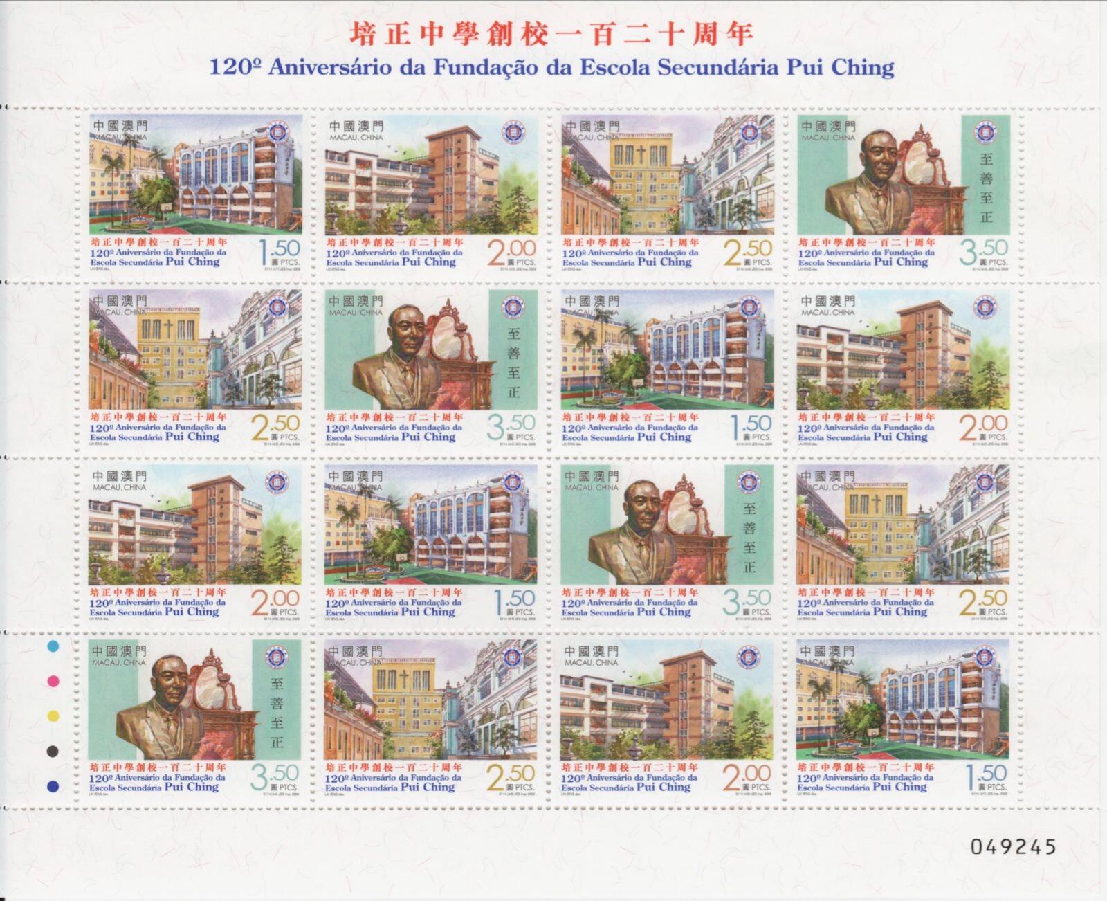 澳门 邮票 2009 培正中学建校百二十年 小版