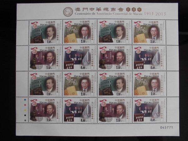 澳門 2013 年 澳門中華總商會百周年 郵票 小版張