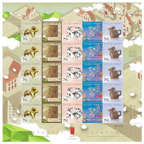 2015 中國 澳門 三輪 生肖 郵票 羊年 小版