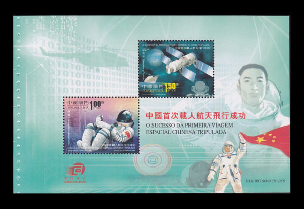 澳門 特5 2003年 郵票 中國首次載人航天飛行成功 小全張