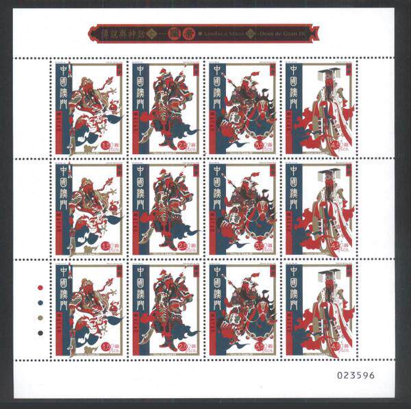 澳門 2004年 傳說與神話 關帝 郵票 小版