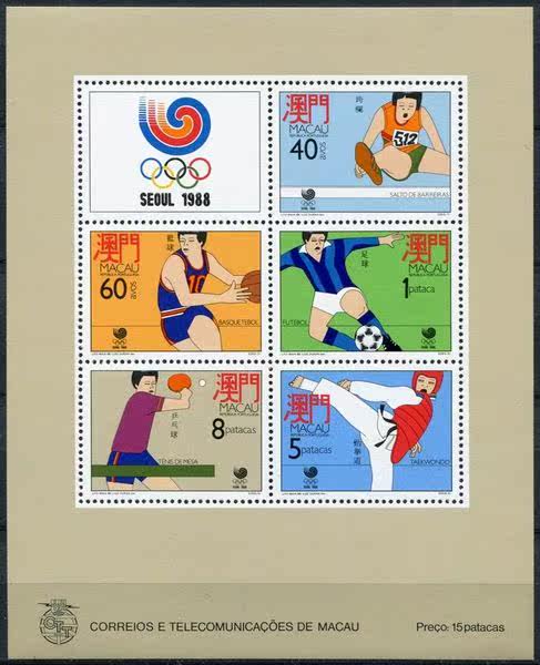 澳門郵票 1988年 漢城奧運 小型張