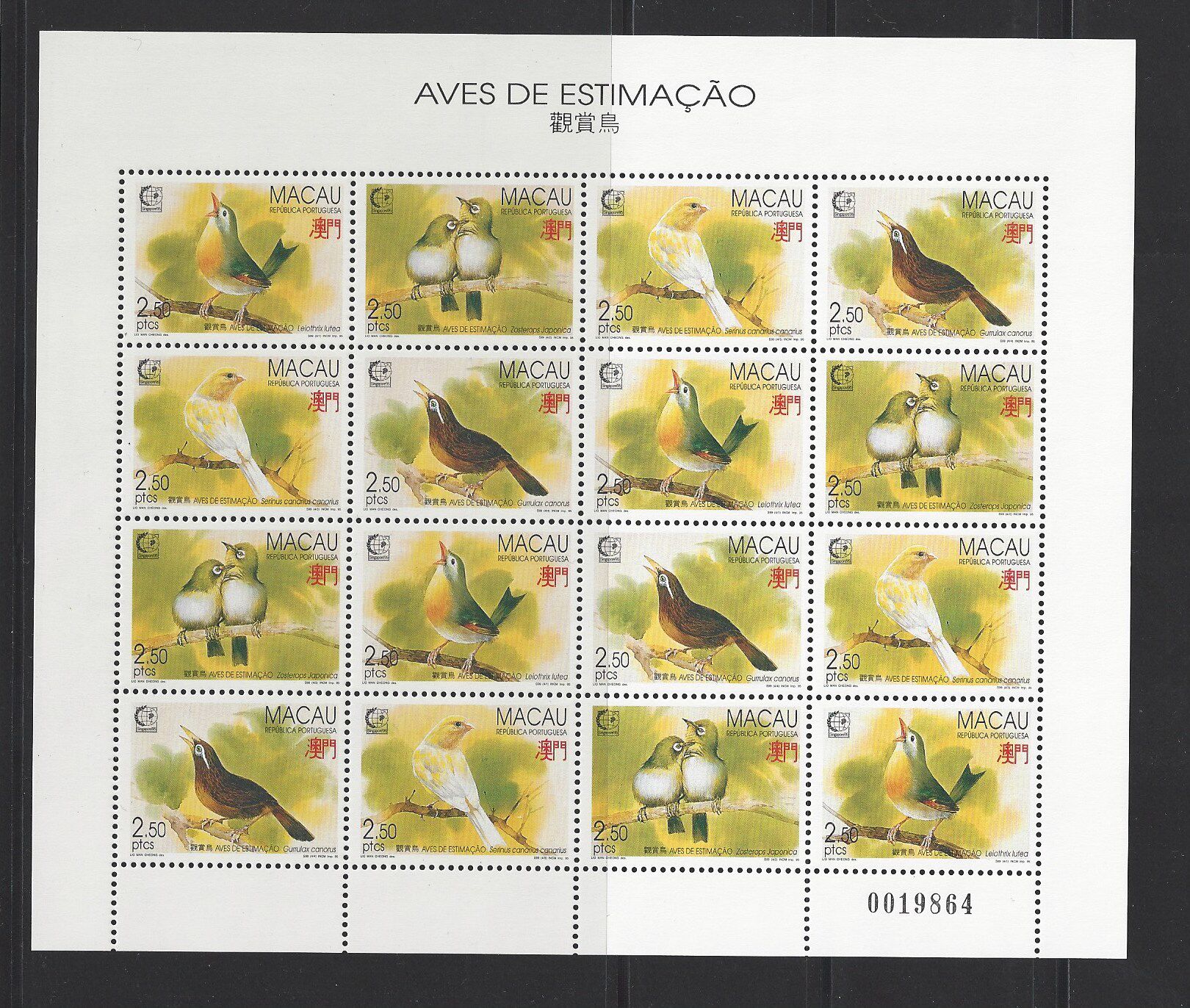 澳門 郵票 1995年 觀賞鳥 小版張 全品