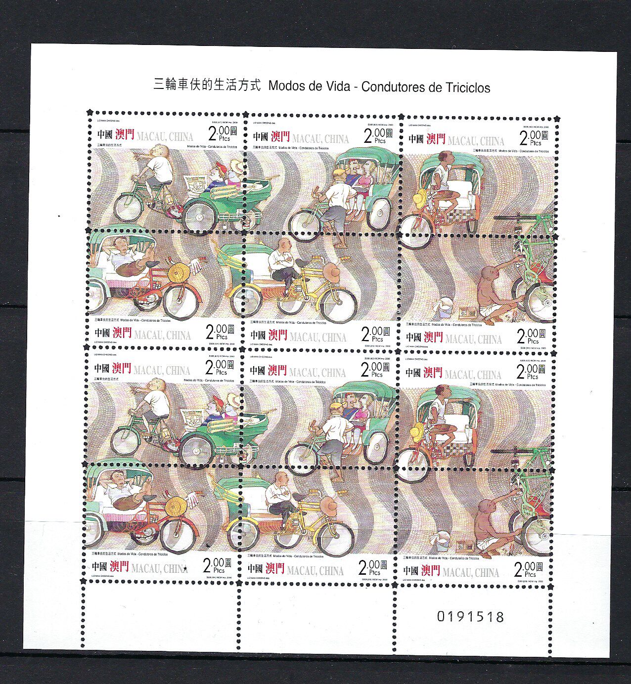澳門 2000年 三輪車 郵票 小版 s008