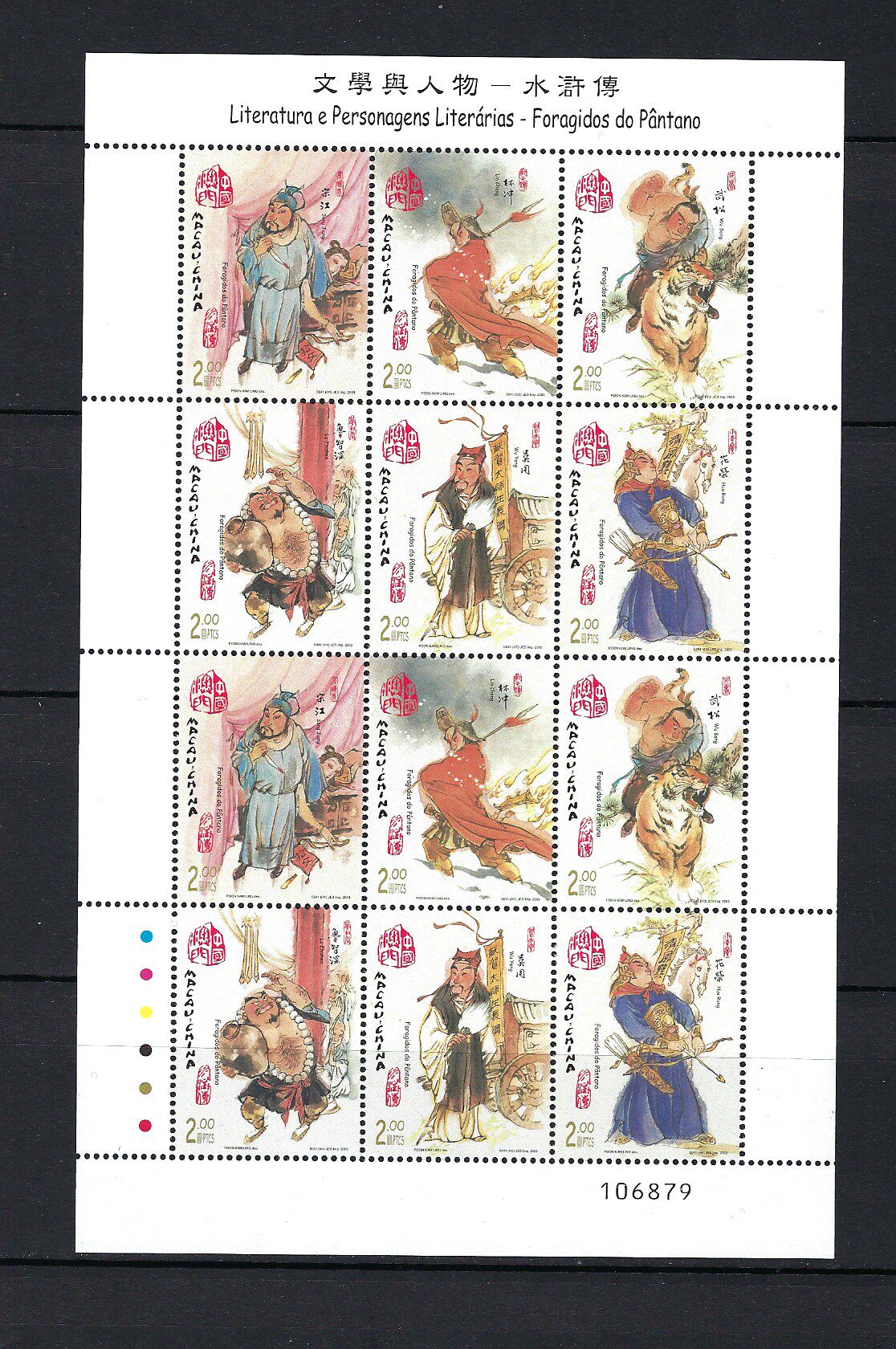 澳門 2003年 文學與人物 - 水滸傳 郵票 小版